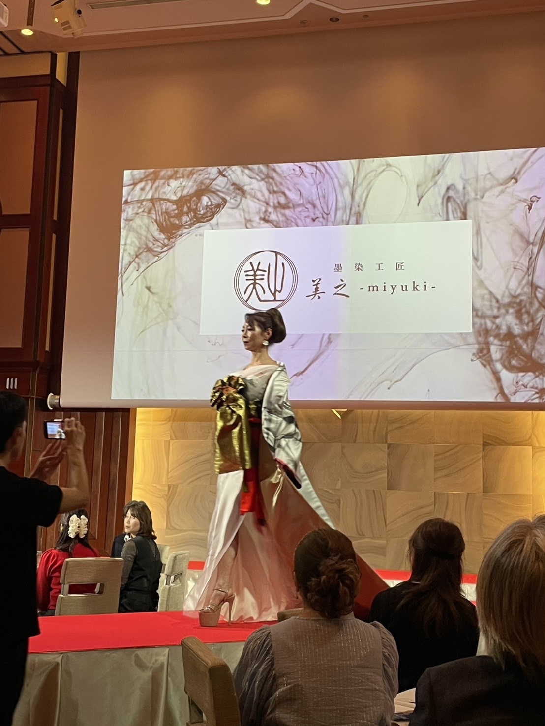 This stage was an elegant space combining splendor and refinement. Models adorned in Sumizome attire graced the luminous runway with poised dress walking, enveloping the venue in a fantastical atmosphere.