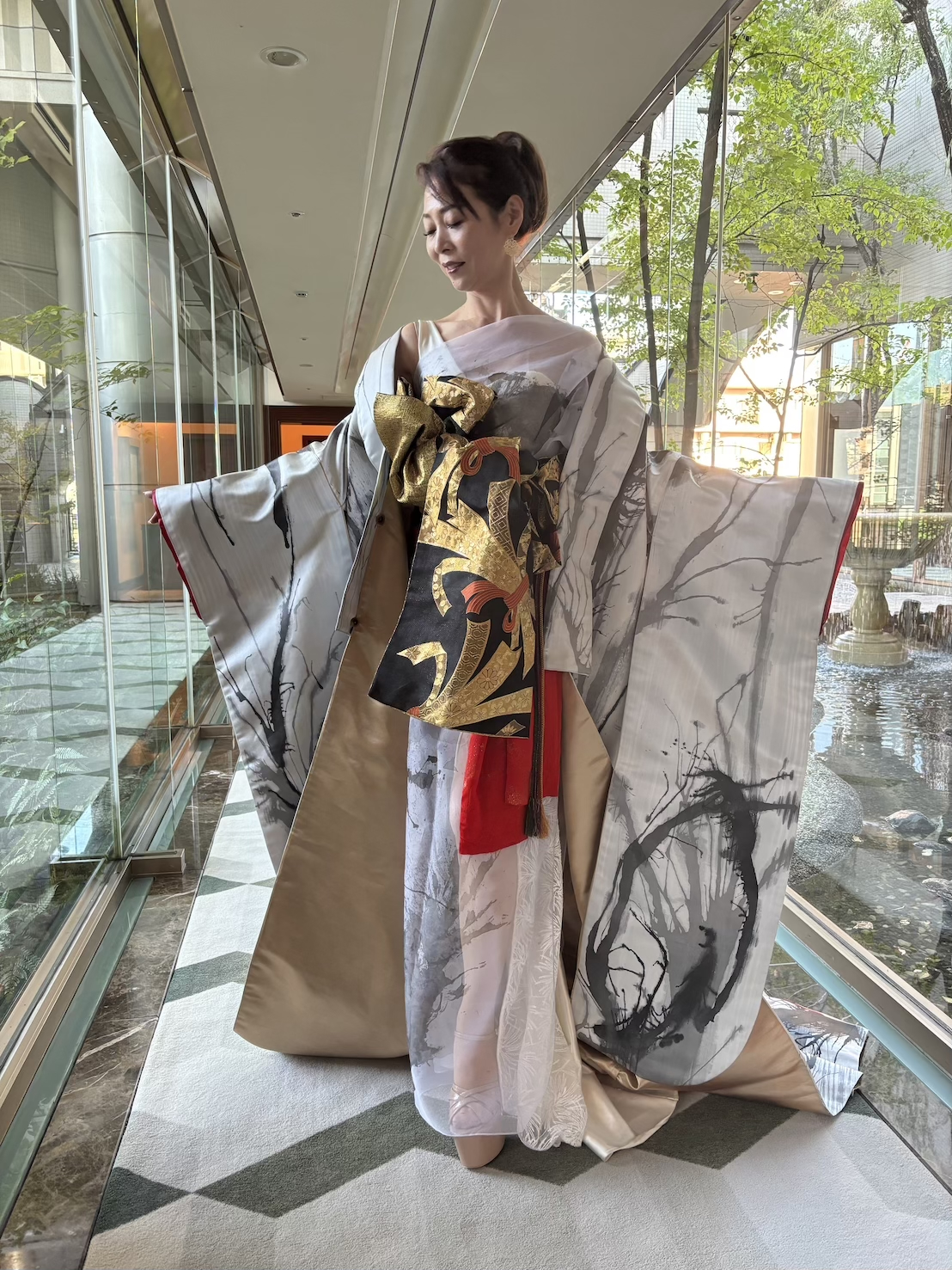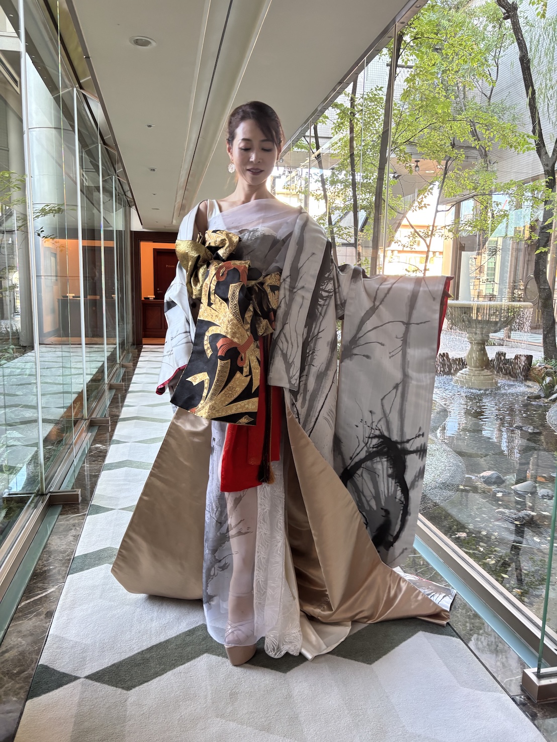 Dresses and Sumizome. This unique production, where Japanese and Western aesthetics intersected, resonated with the extraordinary space of the wedding venue, inviting the audience into the profound world of ink.